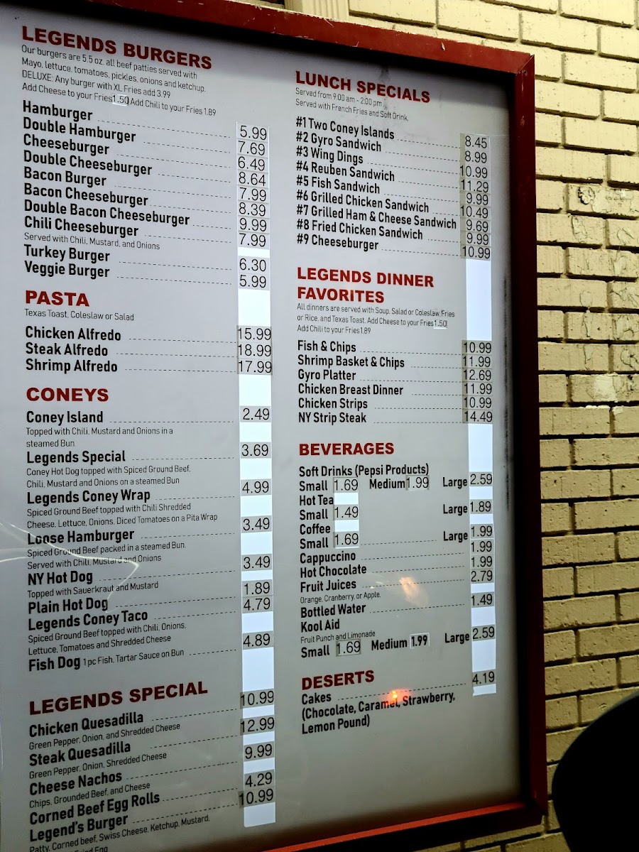 Legends Coney Island stands as a Detroit staple, offering authentic American fast food with a focus on hearty, traditional flavors. Their menu shines with classic Coney Island staples, including a variety of burgers like the Legends Burger, Double Bacon Cheeseburger, and a satisfying Veggie Burger, all paired with crispy fries and soft drinks. Breakfast options are plentiful, from perfectly scrambled eggs and fluffy hashbrowns to protein-packed sides like steak, gyro meat, bacon, and sausage patties. For those craving variety, the stir fry selections—steak, chicken, shrimp, and vegetarian—bring a flavorful twist to the table.
